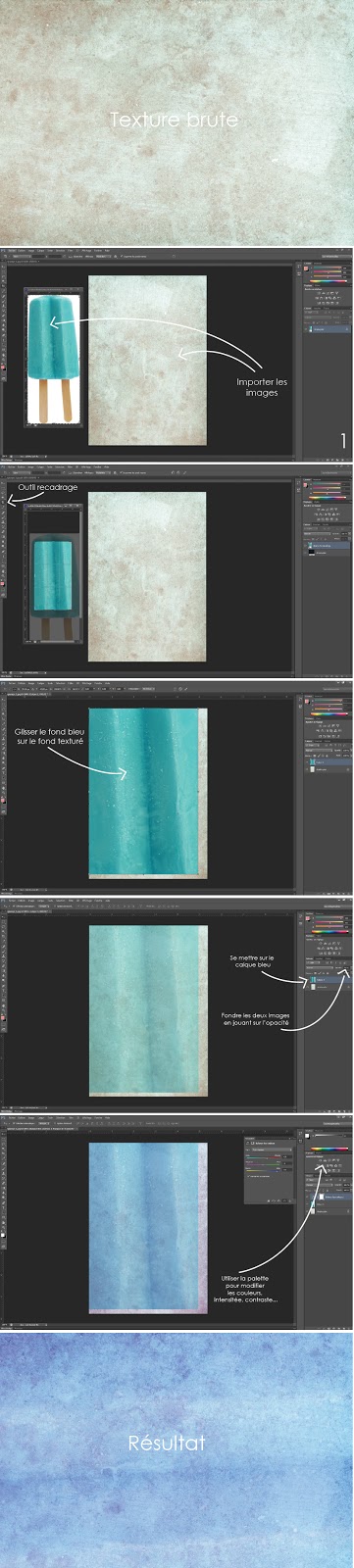 La semaine passée je vous présentais ma gamme de couleur de l’été et pour la faire j’ai travaillé différentes textures après avoir découvert un tuto sur le site génialissime Do It Yvette.